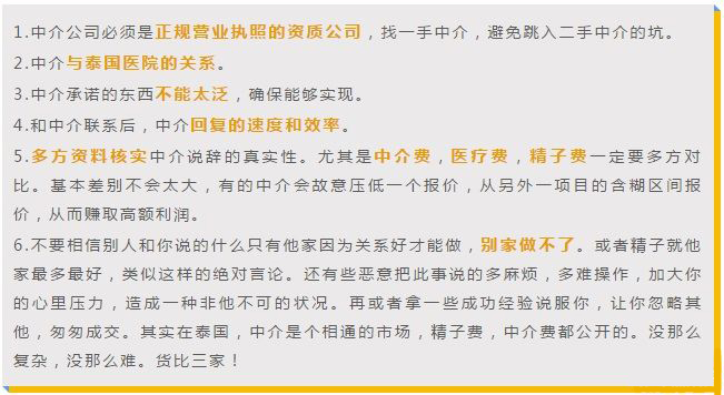 由于出國就醫會面對語言不通、環境不熟、出行不便等問題,加上很多人都沒有旅外或留學經歷,泰國試管嬰兒中介隨著泰國生殖領域的開放迅速發展起來,目前國內從事海外醫旅中介的機構或個人遠超5000家,登記備案可查詢的不少于1000家,如何選擇適合的中介就成了赴泰試管的第一道難題,有泰國試管嬰兒真實經歷的人給出了有效的解決方案,如下:
